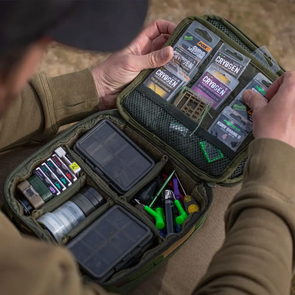 Die kompakte DPM Tackle-Tasche von Trakker ist für die einfache und praktische Aufbewahrung von Angelgeräten konzipiert. Sie verfügt über ein anpassbares Trennsystem sowie zahlreiche Fächer, die für unterschiedlich große Ausrüstung geeignet sind.