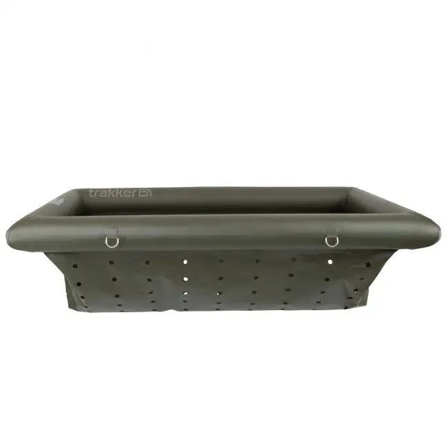 Der Korral ist leicht aufzublasen und besitzt ein hochwertiges Füll- und Entleerungsventil für einen schnellen Aufbau und ein schnelles Einpacken. Er wird auch mit einer Fußpumpe und einem strapazierfähigen Tragesack geliefert. Das Hauptmaterial ist mit großen Stanzlöchern ausgestattet, um für einen ungehinderten Wasserdurchfluss zu sorgen, während der Fisch in der Wiege liegt. Die Wiege wird durch drei Ringe gesichert, die mehrere Verankerungsmöglichkeiten bieten.
